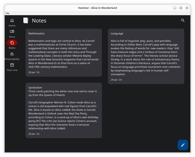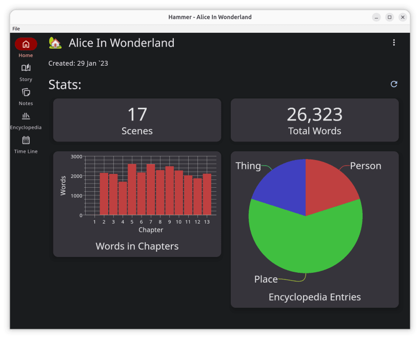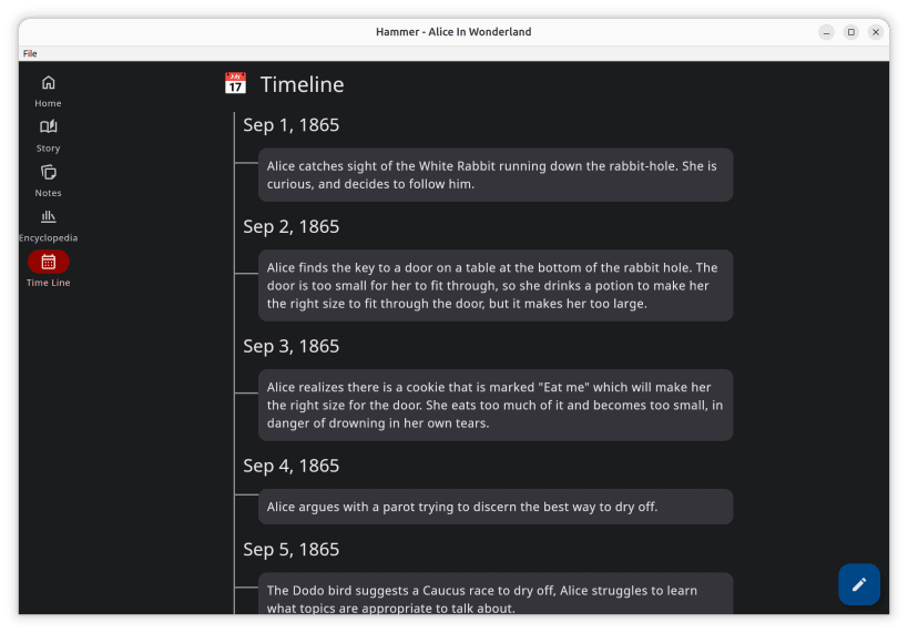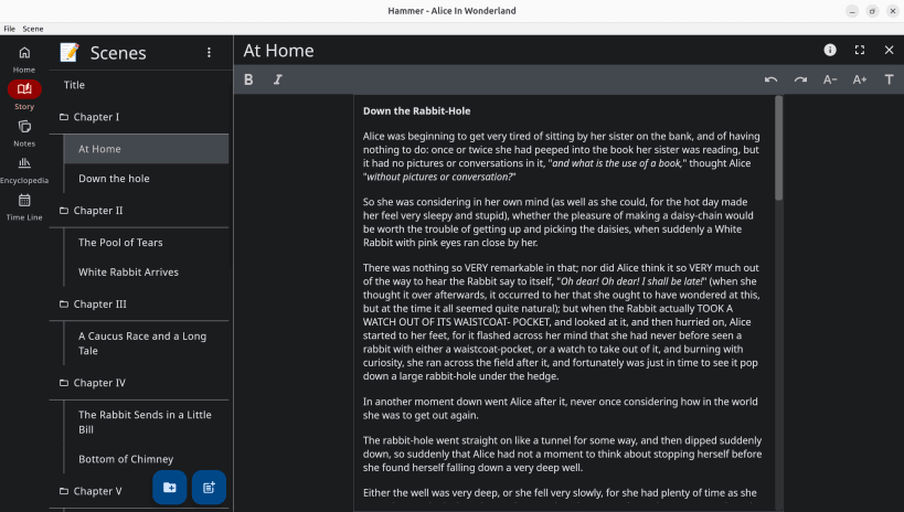 Hammer is a multi-platform story editor application. It's designed for novelists and storytellers who want an offline-first writing experience with optional self-hosted synchronization.