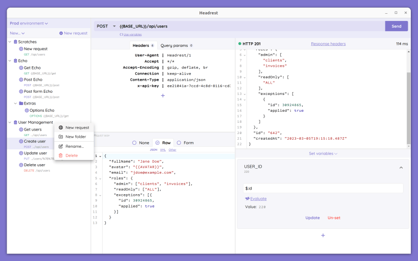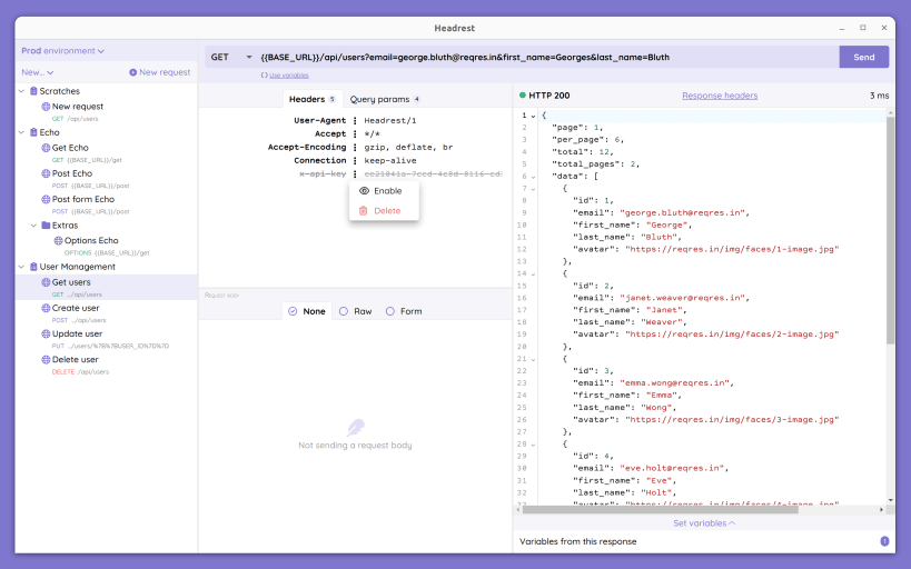 Headrest is a simple tool to make API calls from your machine or any other kinds of HTTP calls. It's simple to use, free and supports: