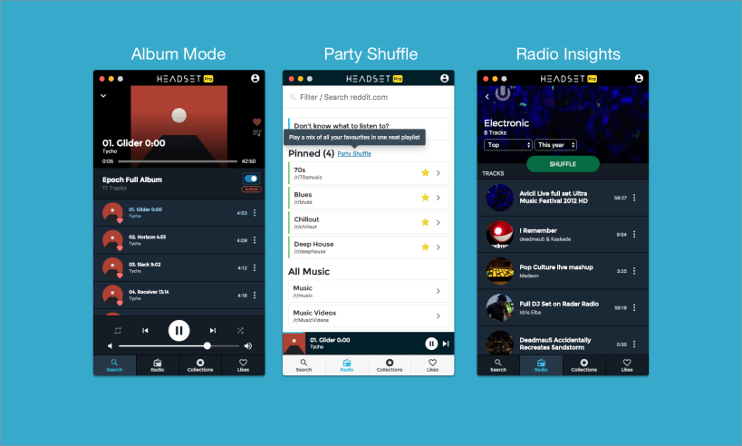 Headset is a desktop app that turns YouTube into a world class music streaming service. Create collections, tune-in to a music subreddit or quickly play that song you’ve had stuck in your head all day!