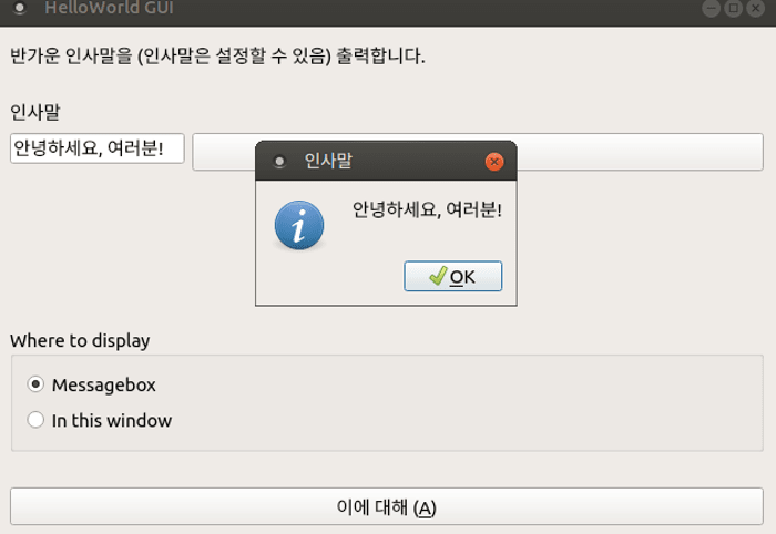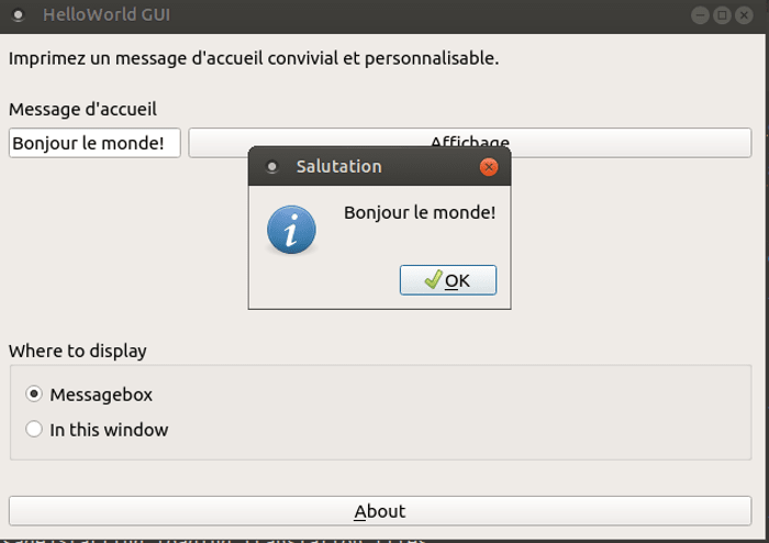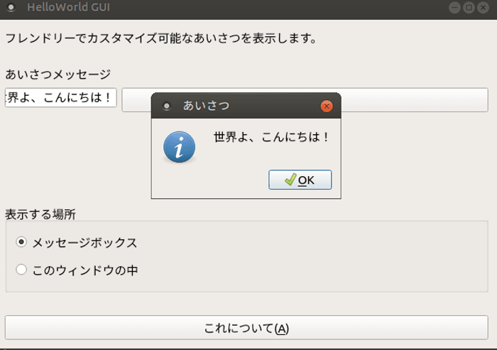 HelloWorld GUI is a GUI version of GNU Hello running on Linux and Windows. It can be used for various things, from GUI testing to programming materials. Windows executable files do not exist, so you need to build from source code.