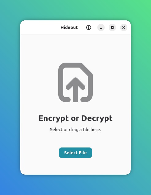 Hideout is a minimal and secure desktop application for file encryption and decryption, powered by GnuPG. It provides a simple drag-and-drop interface to protect your sensitive files.