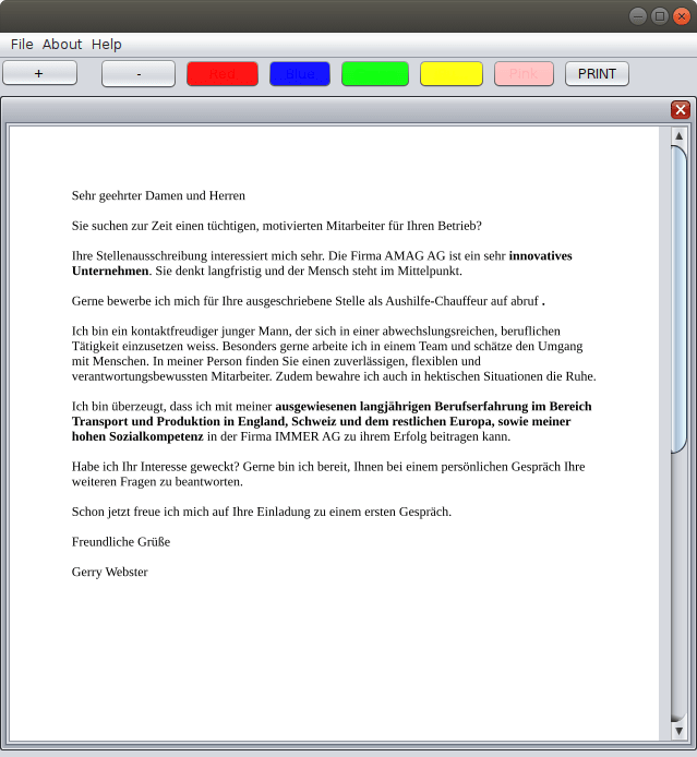 Select text in a colour of your choice and then save it back as a pdf or print it.