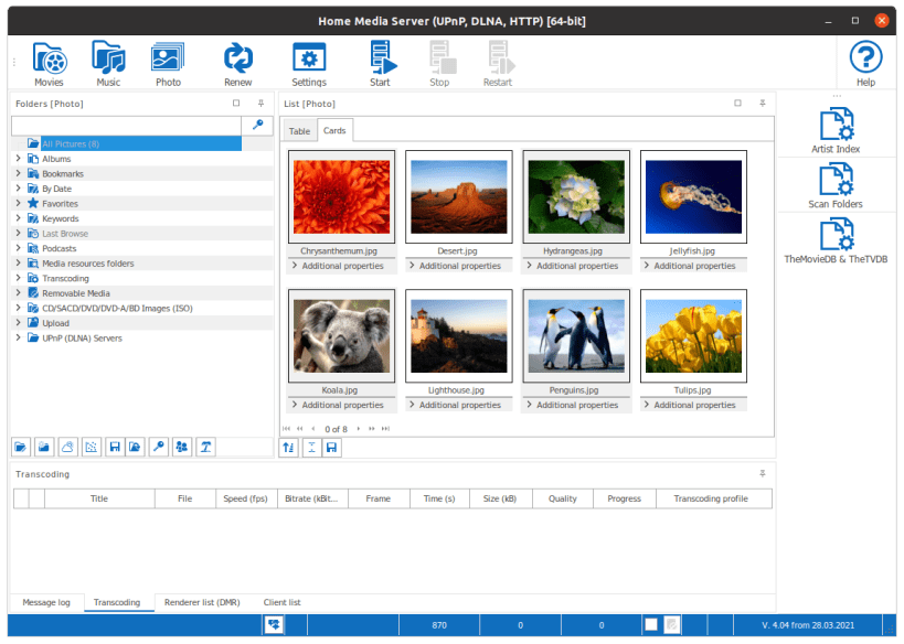 Home Media Server (UPnP, DLNA, HTTP) - program, which provides media resources (photographs, audio and video files) on your computer to other UPnP (DLNA) devices in the home network, for example, Philips TVs (SimplyShare), Sony TVs, Samsung TVs (AllShare), LG TVs (SmartShare), Toshiba TVs, Sony Playstation, XBOX 360 (One), WD TV Live, iPad/iPhone/iPod, Apple TV (AirPlay), Chromecast (Google Cast), mobile and PDA devices.