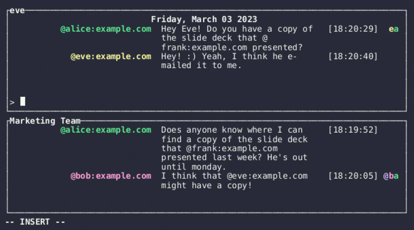 can be used to switch to join a new room or start a direct message:split
