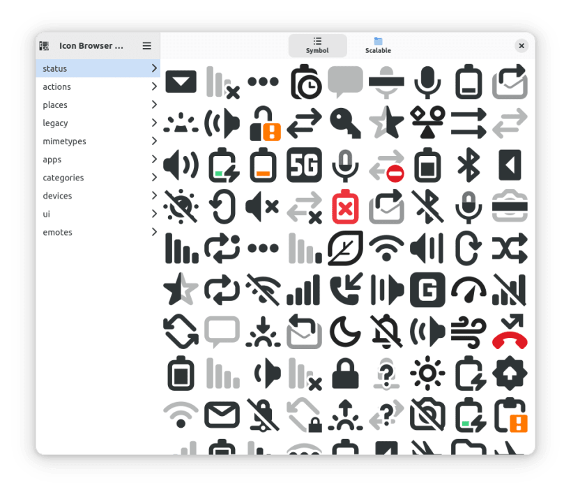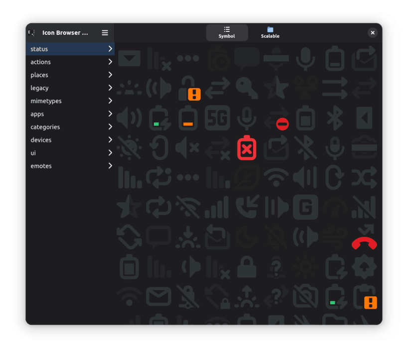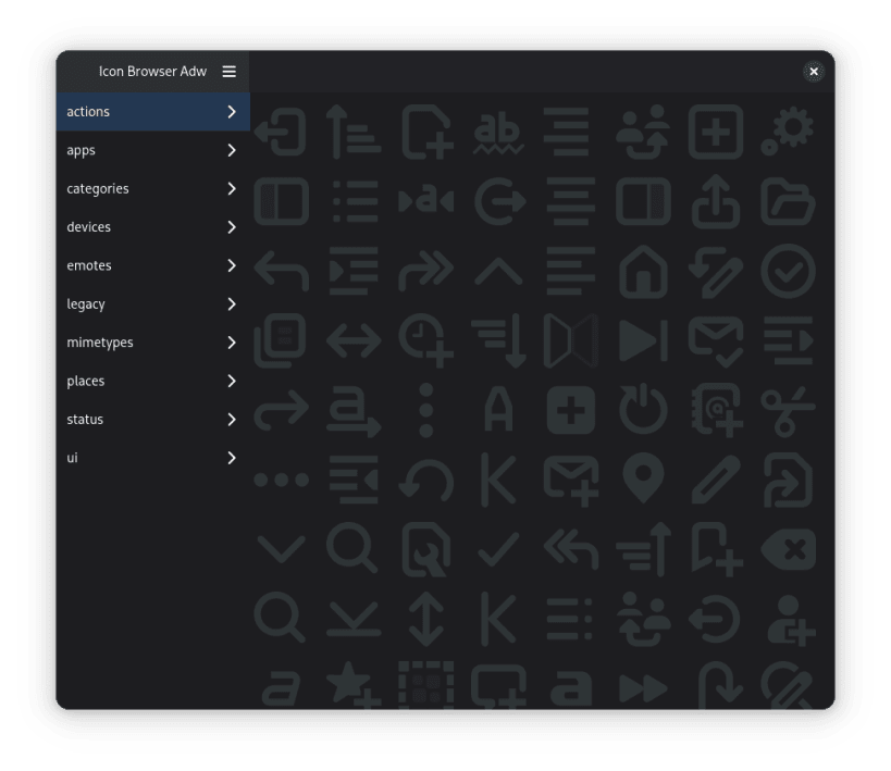 icon-browser-adw allows you to view the gnome desktop icons with adwaita, allowing you to copy the icon names for use in your projects.