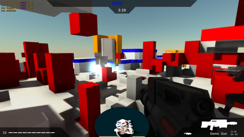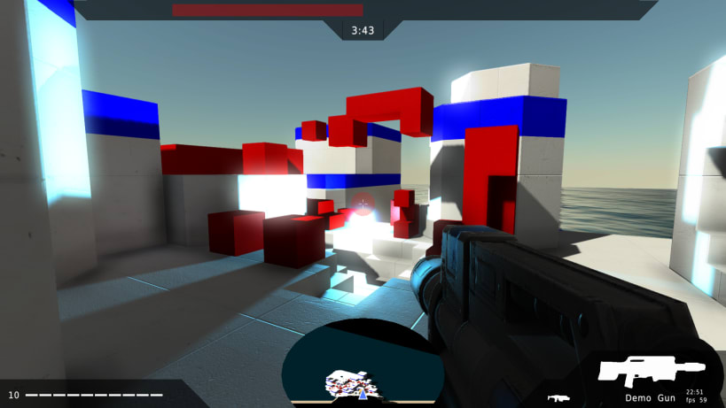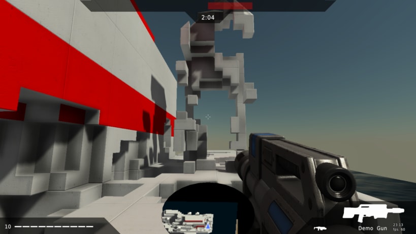 A first person 3D multiplayer shooter designed around terrain modification. Destroy and build the level to modify the playing field to your advantage, and play against other players online using the integrated server interface.