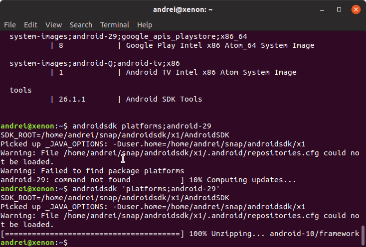 This is snap version of console sdk manager for Android. For more information about sdkmanager see official google [documentation](https://developer.android.com/studio/command-line/sdkmanager) ubuntu