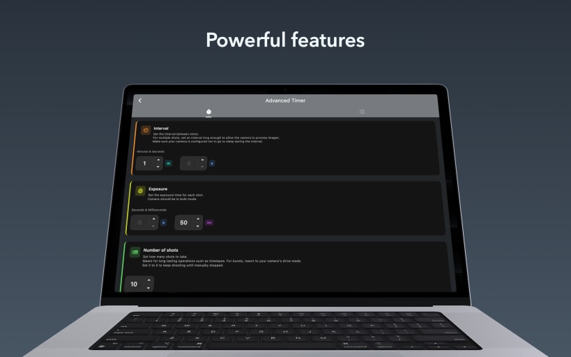ADDITIONAL FEATURES Easy Setup: Quick initial setup, then auto-connects to your cameras instantly. Smart Shutter: Automatically captures the photo as soon as focus is achieved. Video Recording: Start/stop recording with automatic restart when time limits are reached. Timers: Adjust exposure, interval, and number of shots. Script timers for complex sequences. Shutter Button Lock: Lock the shutter to enable burst, bulb, or interval shooting when paired with the timer. Focus Modes: Supports auto focus, manual focus respecting the camera's settings. Zoom Control: Responsive digital, analog, and absolute zoom—on both power zoom and even prime lenses. Geotagging: Add location data to your photos to know exactly where they were taken. Offline & Private: No sign-up required. Works fully offline, anywhere you go. Note: Feature availability may vary depending on your camera model.