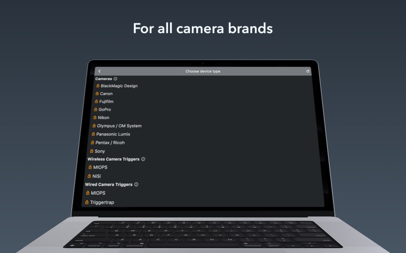 PRICING Free trial available to test compatibility Single Brand option - control one camera brand All Cameras option - control all supported camera brands Available as one-time purchase or subscription Purchases unlock access to all platforms