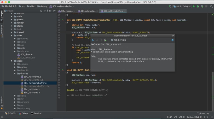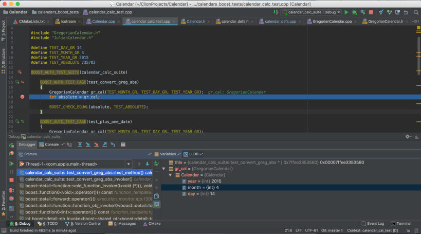 CLion is a cross-platform IDE which natively supports C and C++, libc++ and Boost. It offers instant navigation to a symbol's declaration or usages, code generation for constructors/destructors, operators and more. There are dozens of refactorings, code analysis (including Data Flow Analysis and Clang-Tidy integration) and integration with GDB and LLDB. CLion uses the well-known CMake build system, supports Google test, Boost.Test, and Catch unit testing. There is Doxygen for documenting the code, Valgrind Memcheck for memory profiling, and support for all the popular Version Control Systems, it can even provide a VIM-emulation mode via a plugin.