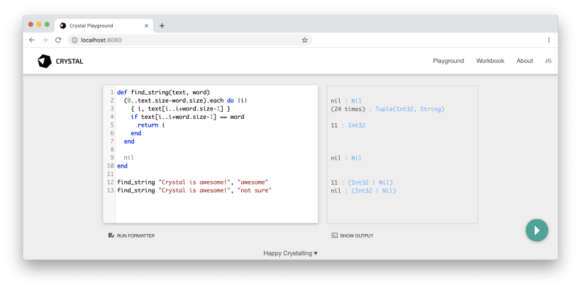 Crystal is a programming language with the following goals: