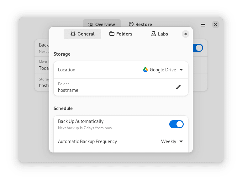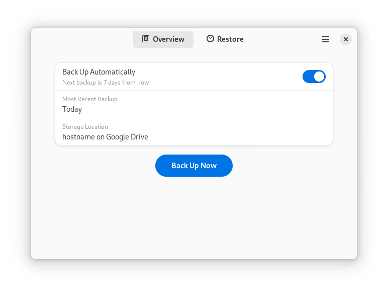 Déjà Dup focuses on ease of use and recovering from personal, accidental data loss. If you need a full system backup or an archival program, you may prefer other backup apps.