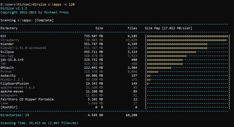 DirSize is a directory reporting tool. It recursively scans