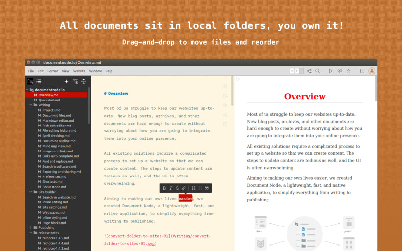 working on your local folders of plain text Markdown