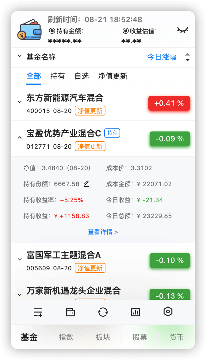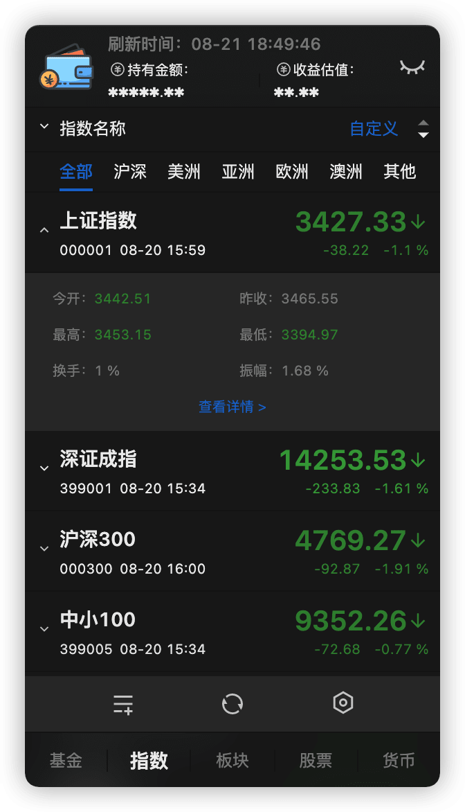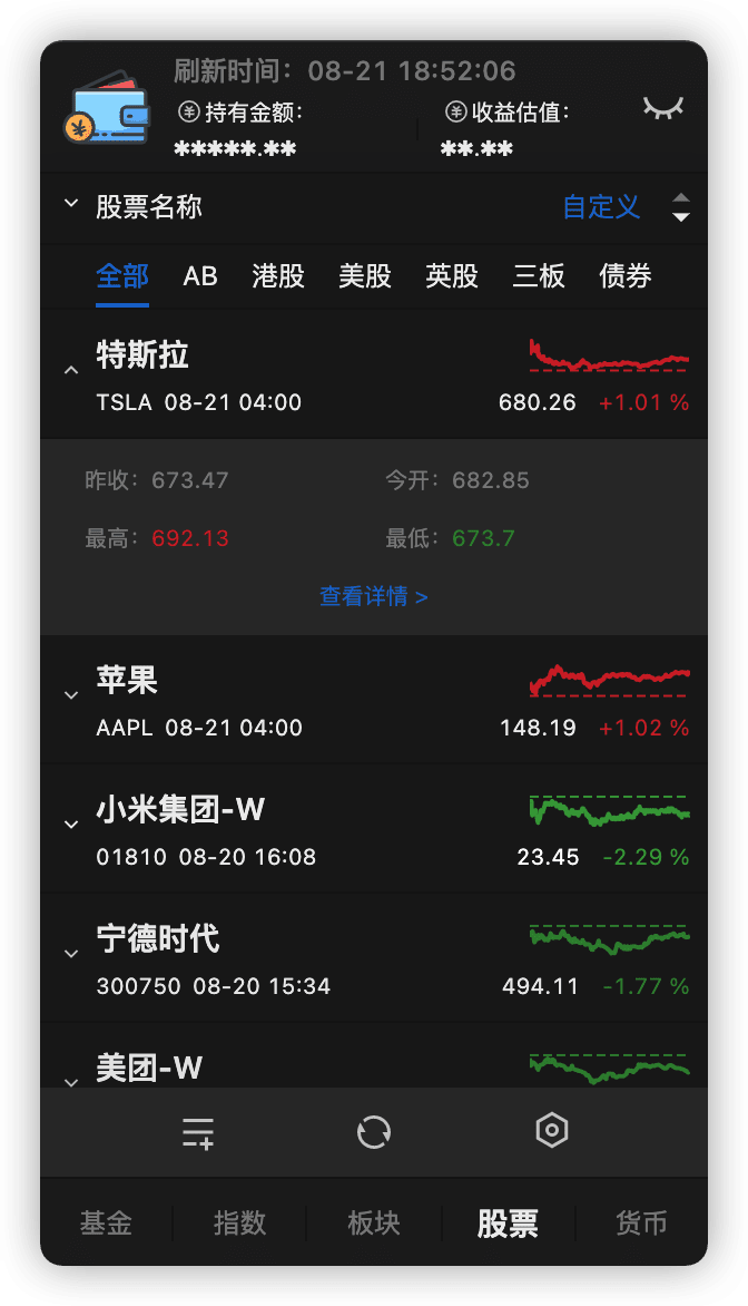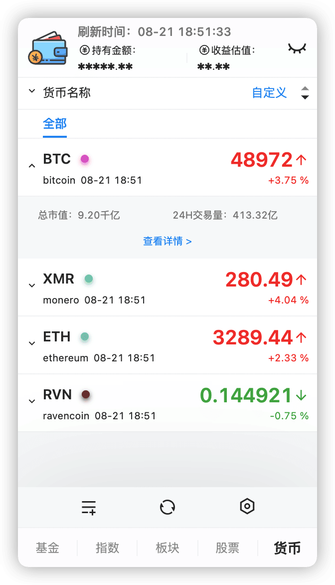 基金,大盘,股票,虚拟货币状态栏显示小应用,支持 MacOS,Windows,Linux 客户端,数据源来自天天基金,蚂蚁基金,爱基金,腾讯证券,新浪基金等