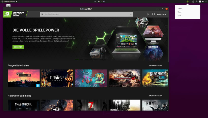 Note: This is an unofficial client. GeForce NOW is a trademark of nvidia which I am not related in any way. I'm doing this, because I want to use it