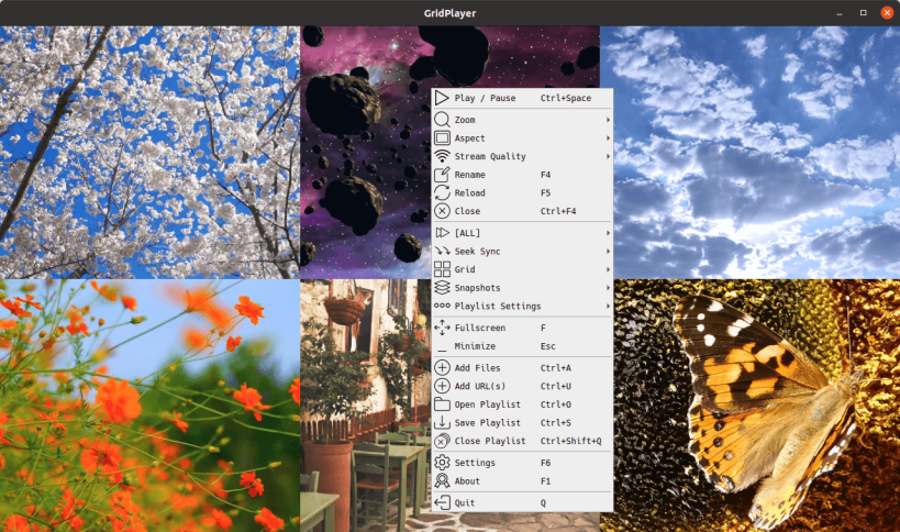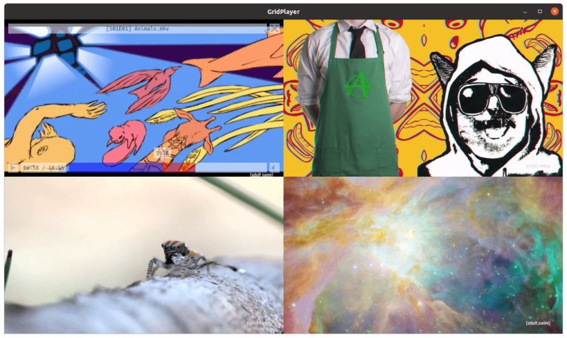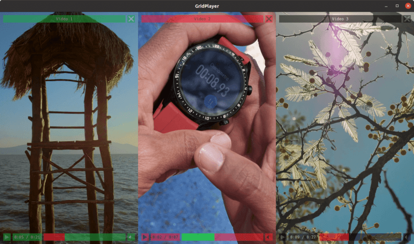 Simple VLC-based media player that can play multiple videos at the same time. You can play as many videos as you like, the only limit is your hardware. It supports all video formats that VLC supports (which is all of them). You can save your playlist retaining information about the position, sound volume, loops, aspect ratio, etc.