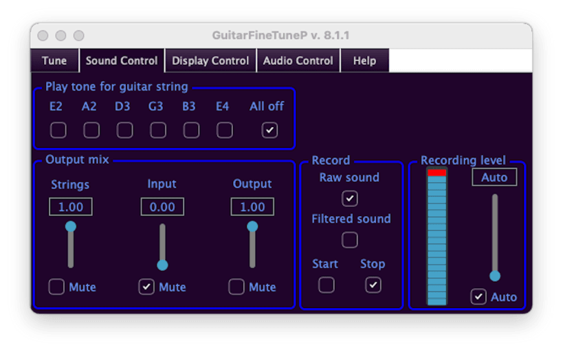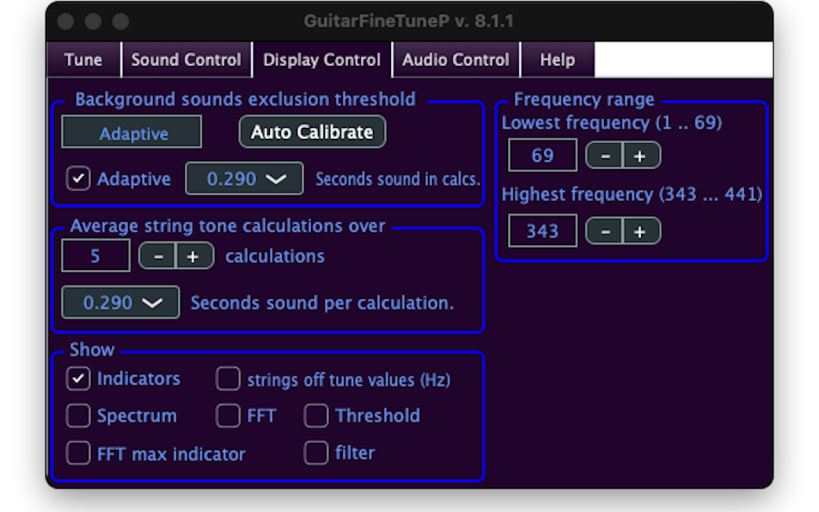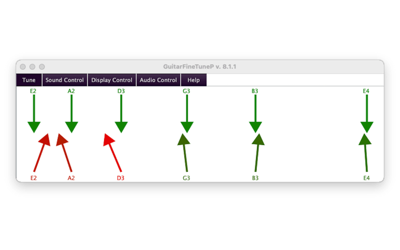 guitarfinetune compares the current frequencies of the guitar strings to the frequencies that the strings should have.