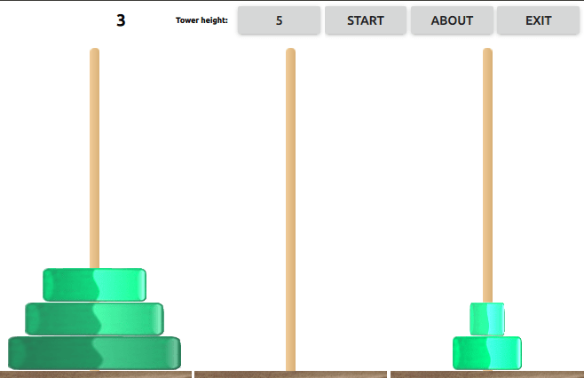 The Hanoi Tower is one of the most popular puzzles of the 19th century. Three bars are given, on one of which eight rings are strung, the rings differ in size and lie smaller on larger ones. The problem is to transfer the pyramid from eight rings for the least number of moves to another rod. At a time, only one ring is allowed to carry, and you can not put a larger ring on less.