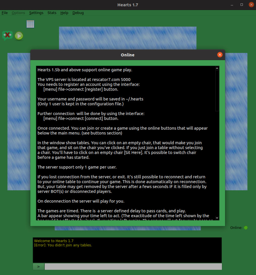 The classic hearts card game. Orignally written by https://github.com/Rescator7.