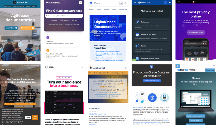 - Corporate, government, nonprofit, education, news, event, and project sites