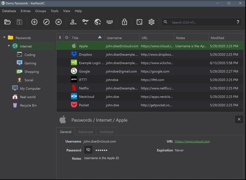KeePassXC is an application for people with extremely high demands on secure personal data management. It has a light interface, is cross-platform and published under the terms of the GNU General Public License.