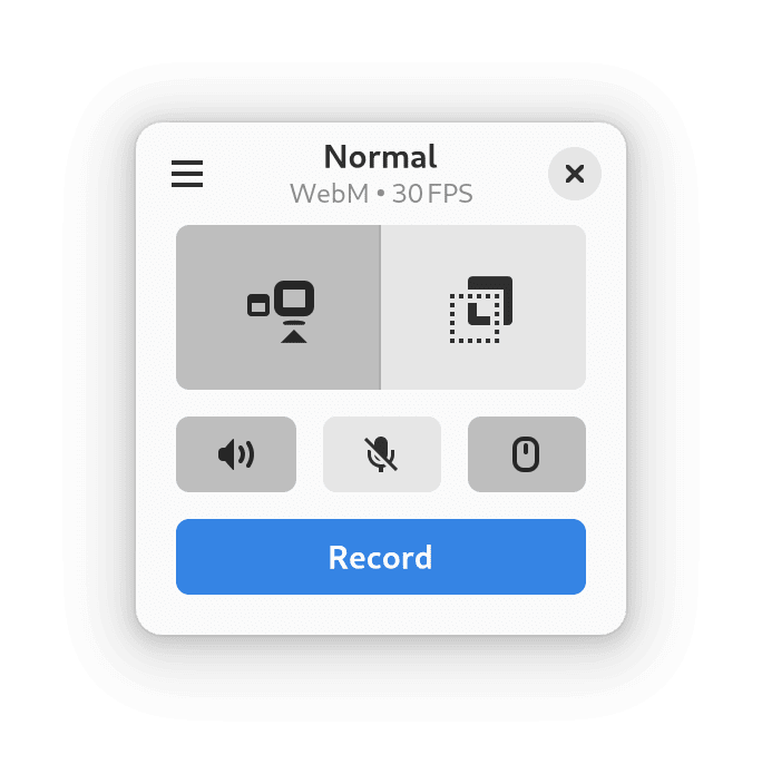 Kooha is a simple screen recorder with a minimalist interface. You can just click the record button without having to configure a bunch of settings.