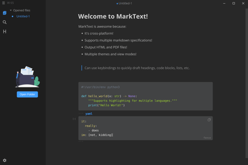 MarkText is a cross-platform, next generation markdown editor that focuses on speed and usability. It has features such as:
