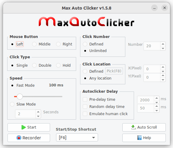 Max Auto Clicker is a free mouse automation tool that emulate and automate mouse clicking and help you of repeated click tasks. For example, it can be used in idle games, auto-refreshing web-browser, etc.