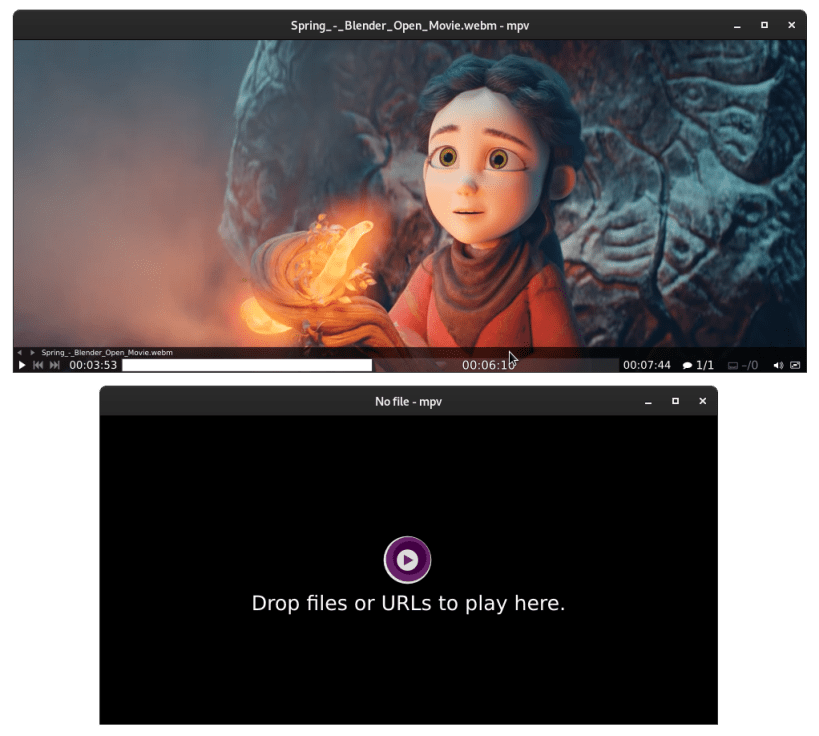 mpv is a free (as in freedom) media player for the command line. It supports a wide variety of media file formats, audio and video codecs, and subtitle types.