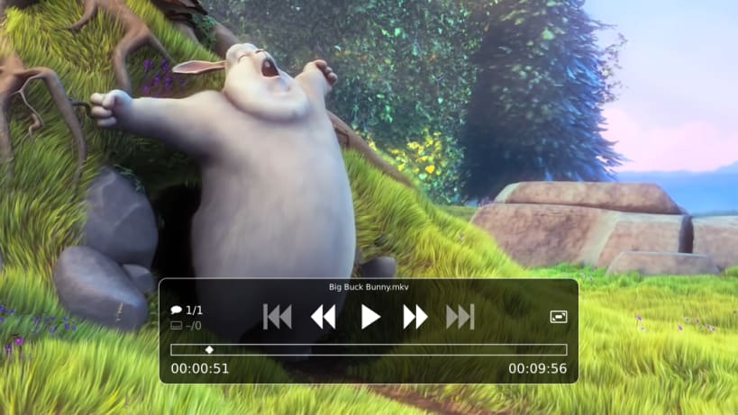 While mpv strives for minimalism and provides no real GUI, it has a small controller on top of the video for basic control.