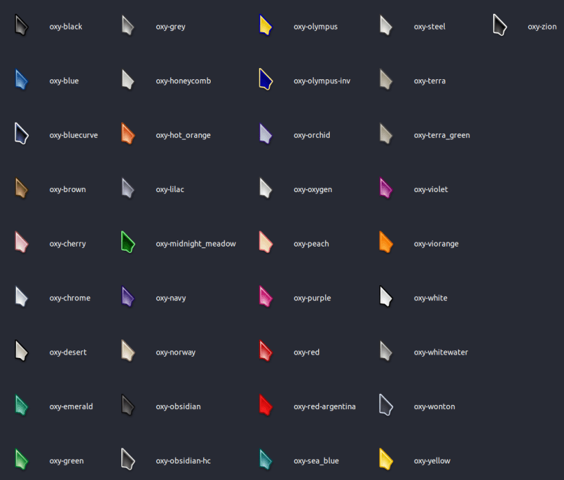 This snap contains the Oxygen Cursor Theme (both oxygen-cursor-theme