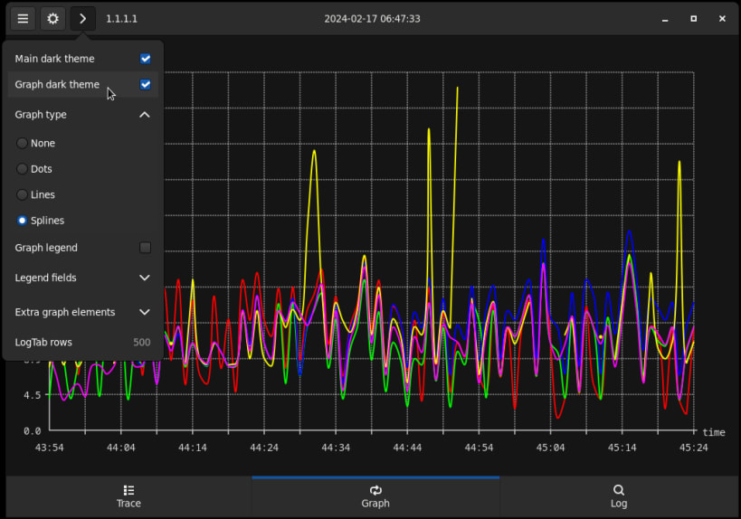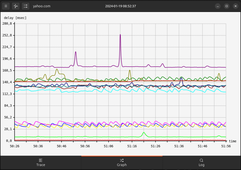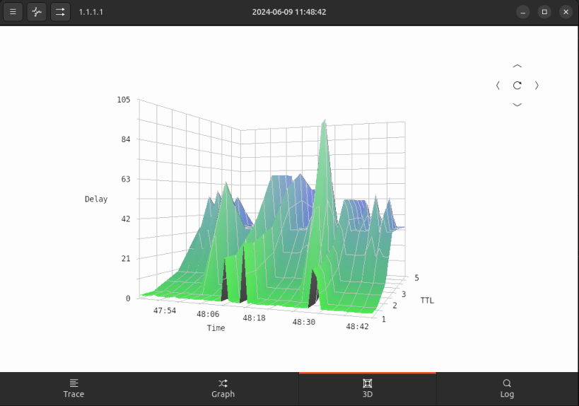 Inspired by ncurses look of mtr and written in GTK4 with runtime graphs.