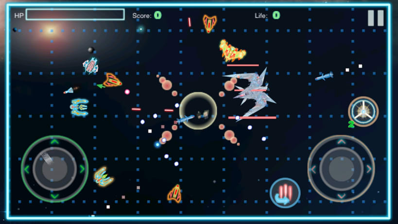 Combat with different types of enemy include battleship, space craft carrier, battle cruiser, destroyer, space fortress, shadow fighter, kinds of fighter ships, star planes and turret cannons. Smart game AI. Survive through waves of enemies' spawn, and achieve a top rank in Phone & Pad, also in other kinds of mobile devices. Use your strategy playing with weapons to defeat different enemies and boss.