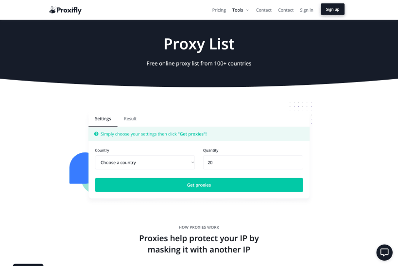 Proxifly is an advanced free proxy API to get HTTPS proxies and SOCKS5 proxies.
