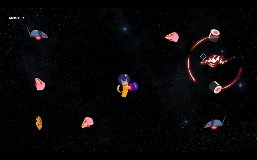 Your mission sounds simple - kill all the space mice using your intergalactic cannon, However to make it through to the next level your reflexes alone won't do - you must also find the most efficient way to win without running out of ammo Be mindful a well fed cat is a happy cat... Enjoy :-) The game is played using the mouse.