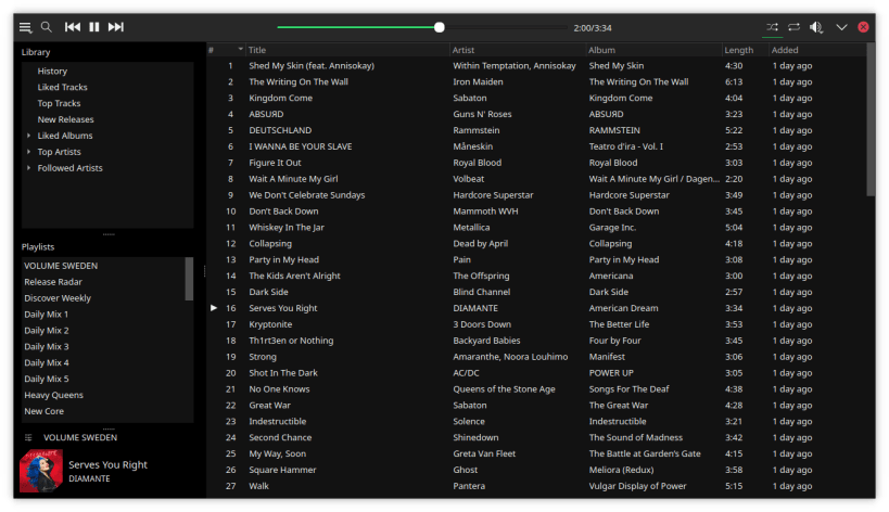 An unofficial Spotify client using Qt as a simpler, lighter alternative to the official client. Much like other clients, you need an actual Spotify client running, for example spotifyd, which can be configured from within the app.
