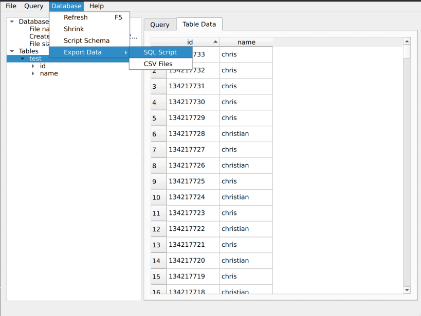 sqlitequery --export-csv --target-directory /path/to/export/folder /path/to/database.db