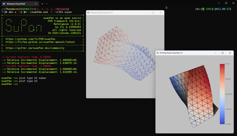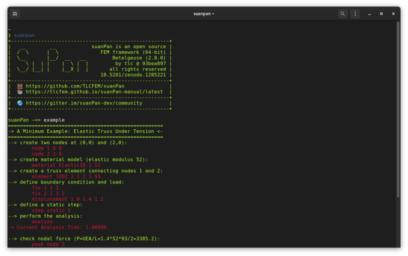 [suanPan](https://github.com/TLCFEM/suanPan) is a finite element method (FEM) simulation platform for applications in fields such as solid mechanics and civil/structural/seismic engineering. suanPan is written in modern high quality C++ code and is targeted to provide an efficient, concise, flexible and reliable FEM simulation platform.