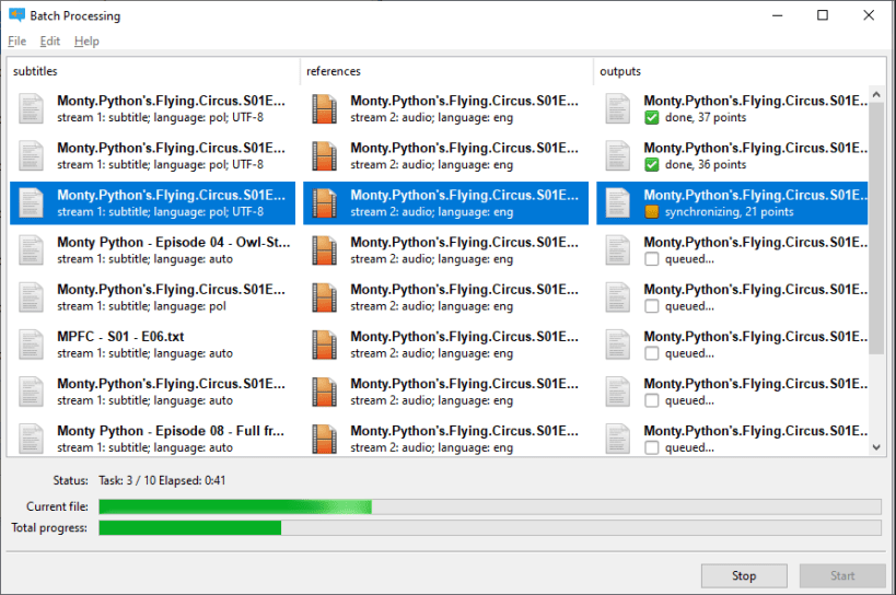 This is an automatic movie subtitle synchronization tool. Synchronization is done by listening to the audio track. Tracks could be of different languages, it will be translated if necessary. Synchronization with another subtitles is also supported. You don’t have to adjust subtitles manually anymore!