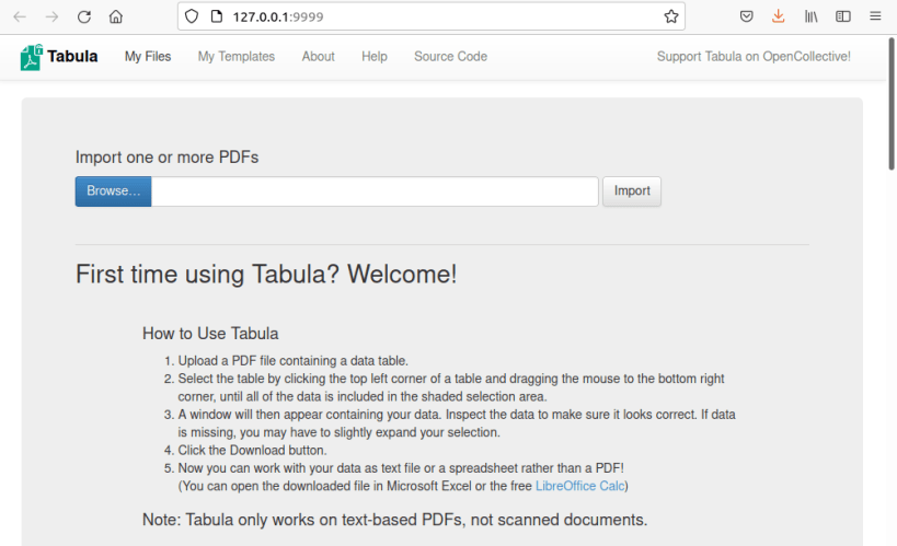 Security Concerns?: Tabula is designed with security in mind. Your PDF and the extracted data never touch the net -- when you use Tabula on your local machine, as long as your browser's URL bar says "localhost" or "127.0.0.1", all processing takes place on your local machine. Even external version checks and the anonymous stats counter have been disabled in the snap.