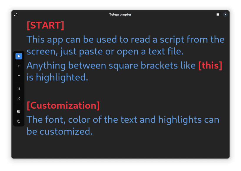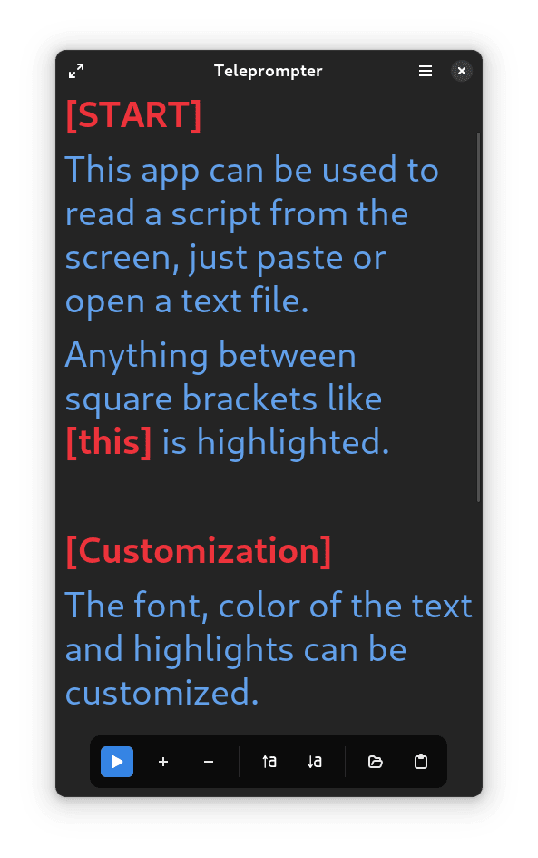 A simple app to read scrolling text from your screen. It has an adaptive layout to work on smartphones too.