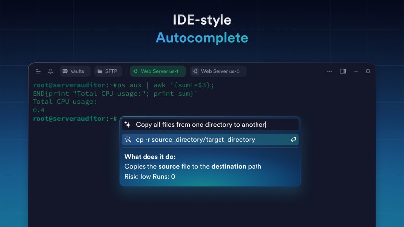 Termius reinvents the command line experience. We strive to make remote access for admins and engineers a more productive and enjoyable experience.