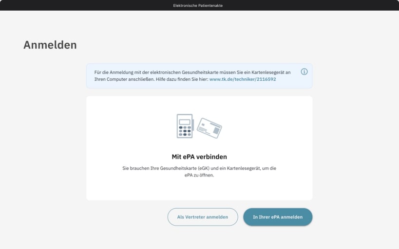 Gesundheitsdaten sind hochsensible Informationen und verdienen bestmöglichen Schutz: Daher benötigen Sie für den Login in der Desktop-Version Ihre elektronische Gesundheitskarte (eGK), den dazugehörigen PIN sowie ein Kartenlesegerät.