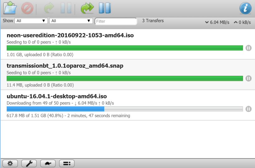 Download and share files using transmissionbt Bittorrent application on Ubuntu Snappy. Has to be run in devmode