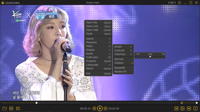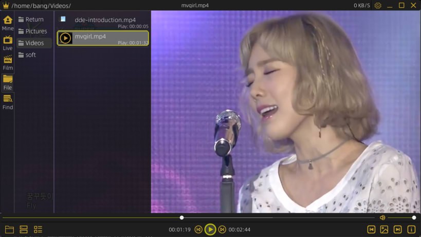 The ulookvideo can plays MP4, FLV, MKV, AVI, MOV, WMV, RMVB, WebM, FLAC, MP3, Ogg/Vorbis JPEG, GIF files, and multimedia streams from various network sources. It supports subtitles (srt, ass) and it can plays files from smb, ,webdav server.