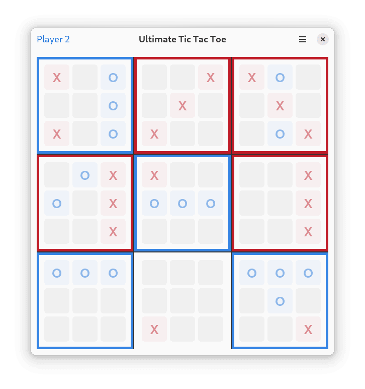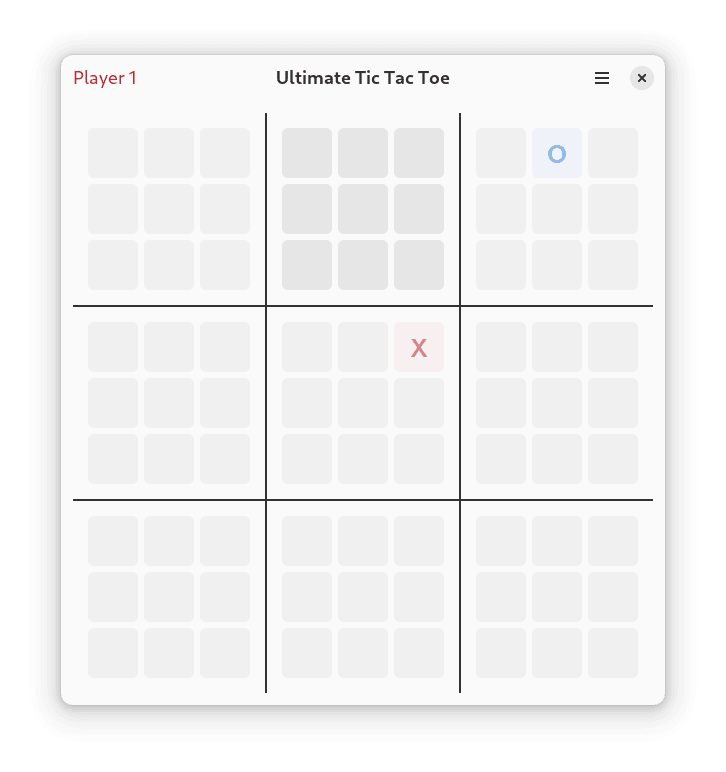 Play Ultimate Tic Tac Toe with your friends or against the algorithm. You can read the rules in the game.