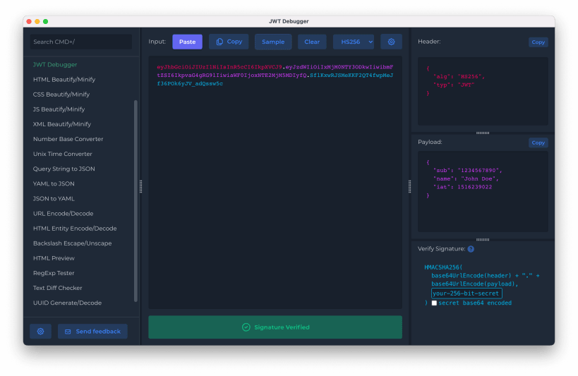 Format JSON, decode Base64, convert timestamps, debug JWT… with just one click!
