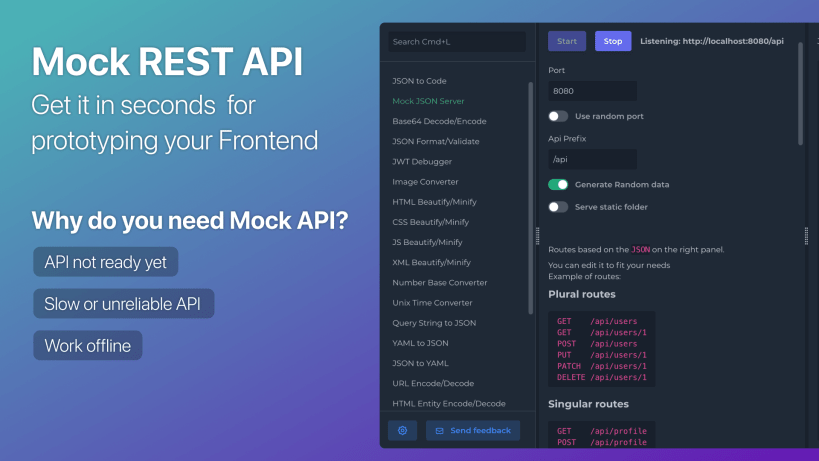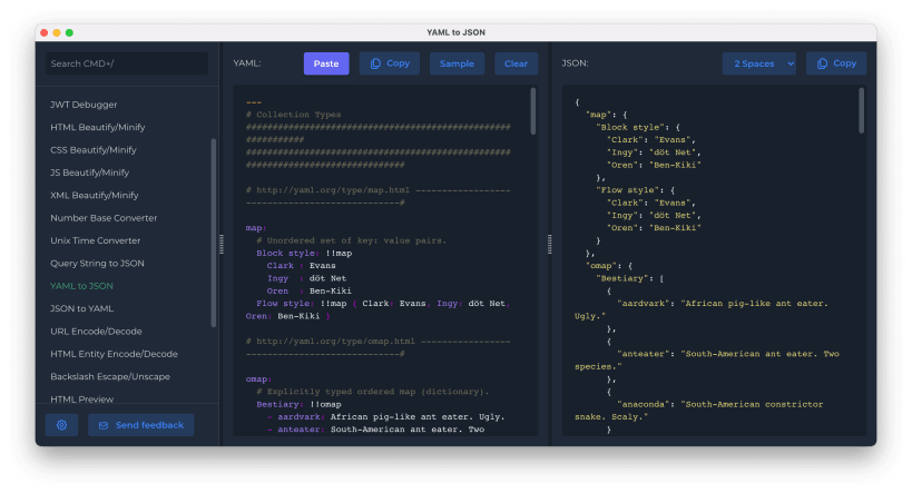 Work completely offline! Everything you paste into the app never leaves your machine.