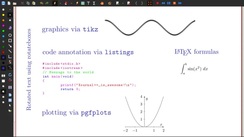 Xournal++ is a hand note-taking software written in C++ with the target of flexibility, functionality and speed. Stroke recognizer and other parts are based on Xournal Code, which you can find at sourceforge. It supports GNU/Linux (e.g. Ubuntu, Debian, Arch, SUSE), macOS and Windows. Supports pen input from devices such as Wacom Tablets.